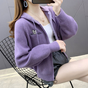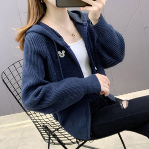 帽子付きのニットカーディガンの女性のジッパーセーターの短い小さいサイズのコートの女性の2024年の秋冬の新型の百合の上着