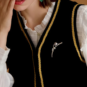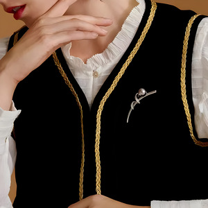 简约时尚丝带胸针高档女百搭气质珍珠胸花小众设计感别针西装配饰