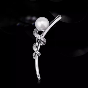 白珍珠-丝带胸针