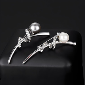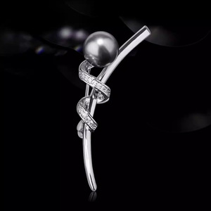 灰珍珠-丝带胸针