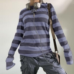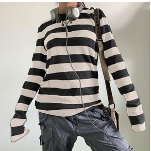 ヨーロッパとアメリカの新しいルーズカジュアルストライプオールマッチトップアマゾンコットン通勤インスタイル長袖メーカー卸売