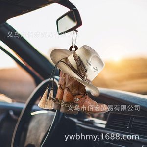 クロスボーダー新品面白いカーストラップ装飾品パーソナライズカウボーイブーツと帽子フラットカーストラップ装