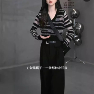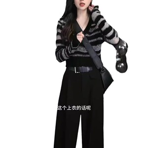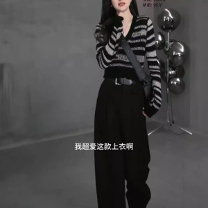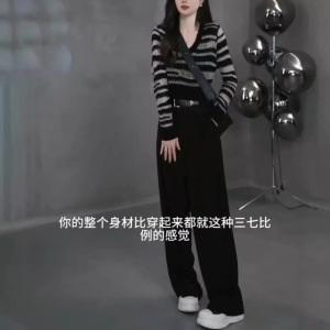 79005大愛美依縁2024秋の新型韓国版vネック長袖洋気上着高腰直筒長ズボン女