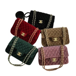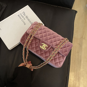 Xiaoxiangfeng ハイエンド菱形チェーンバッグ新しいゴールドベルベットファッション多用途ショルダーバッグ女性のクロスボディバッグ女性