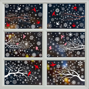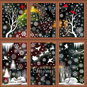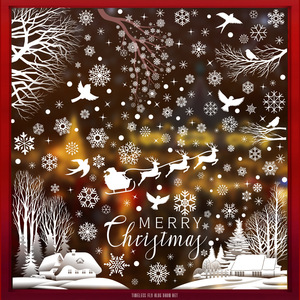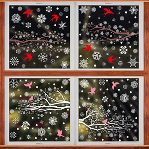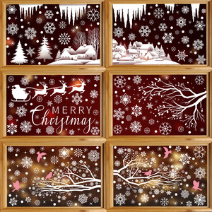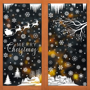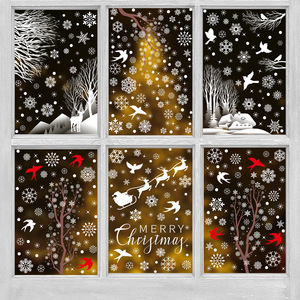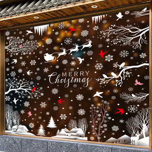 新しいアマゾンクリスマス装飾ヘラジカスノーフレーク静電ステッカーハミンバードスノーハウスメリークリスマスガラスステッカー