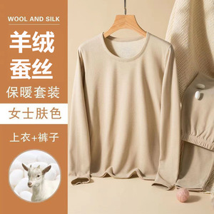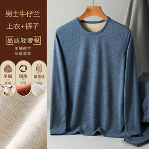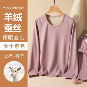 カシミヤシルク保温下着男性女性秋衣秋ズボンセットにベルベットを加えて秋冬のシャツを厚くして卸売りを代行する