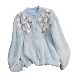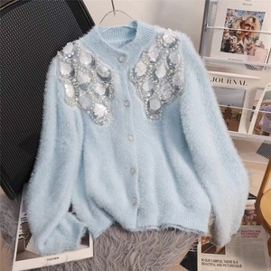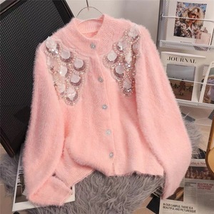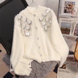 小香風重工釘珠スパンコールニットカーディガン女性2024春の優しい気質の短い柔らかいモチモチのセーターコート