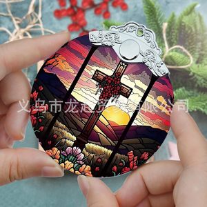 クロスボーダー円形ガラス絵クリエイティブクリスマステーマヘラジカキノコ十字ホーム装飾クリスマスツリー装飾品