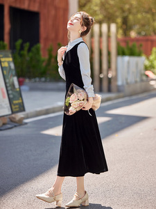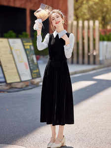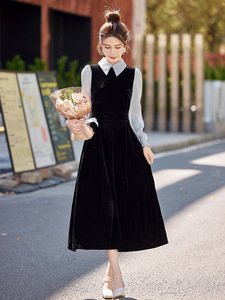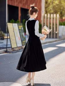 2025秋の新しいスタイルのファッショナブルなフレンチエレガントなステッチコントラストハイウエストAラインシャツカラードレス