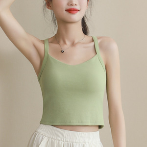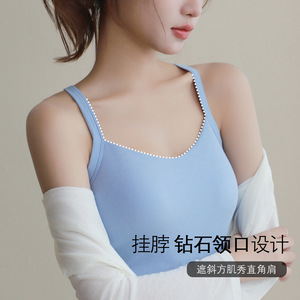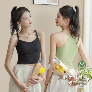 夏の純粋な魅力、万能なキャミソール、女性用、外でも着用可能、胸パッド付き、固定カップ、インナーとしても使える、美背トップス