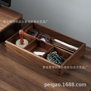 黒胡桃木収納ケース玄関デスクトップ収納実木オフィス化粧品アクセサリー収納盤分格整理