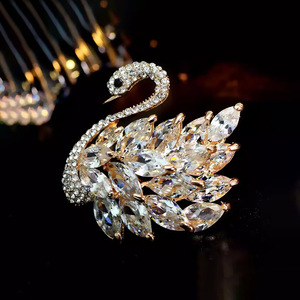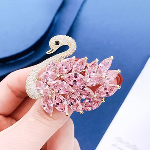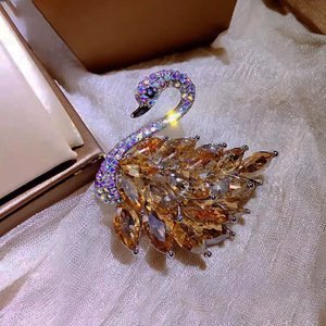 絶妙で多用途な白鳥のブローチ、ハイエンドの女性用韓国クリスタルコサージュデザイン、ニッチなピン、スーツアクセサリー