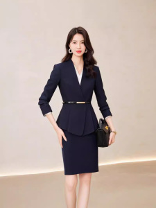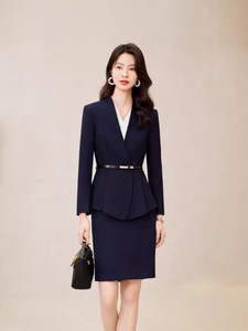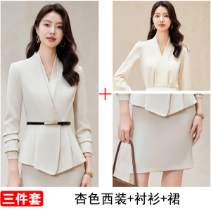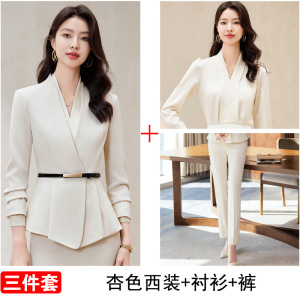 杏色職業スーツ女性春秋ホテルマネージャー受付司会者作業服高級感秋工装