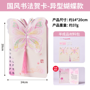 中国風書道グリーティングカード 特殊形状蝶風