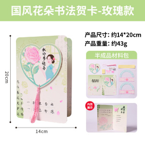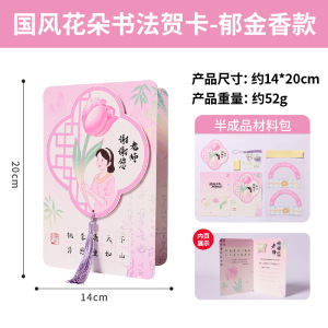 女性の日(3月8日)の中国風書道グリーティングカード、学生向けクリエイティブDIY素材、手作りポストカード、礼儀作法