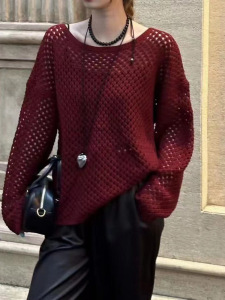 【濮院ウールセーター】透かし編みのプルオーバー