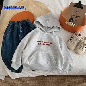 韓国版韓範童装男の子赤ちゃん洋気アルファベットプリント長袖プルオーバー子供カジュアルフード