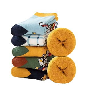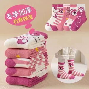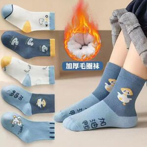 【起爆】子供用靴下秋冬に厚いベルベット保温中筒毛輪靴下男女赤ちゃん床靴下卸売り