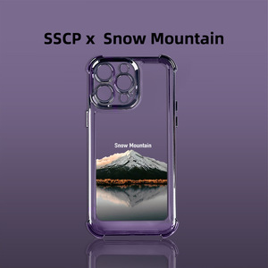 Apple 17promax、透明iPhone13、クリエイティブなエアバッグ落下防止14pro携帯電話ケース、電気メッキ雪山に適しています。