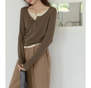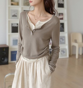 24/ss偽の2つの側引き紐がやせて見える長袖のニットの女性の秋の色のデザイン感の中で上着を掛けて代行します。