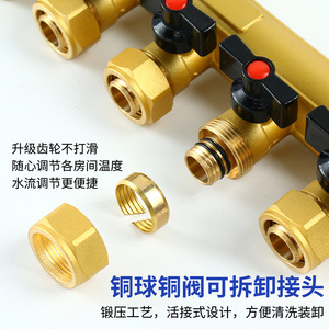 A5固定接地暖分水器家庭用大流量全銅地熱黄銅地熱厚い管壁