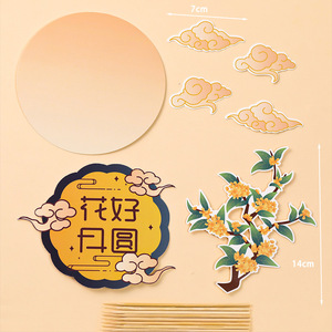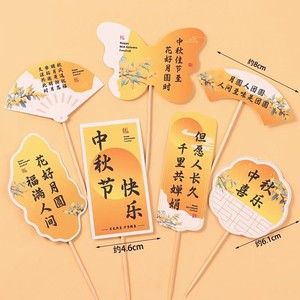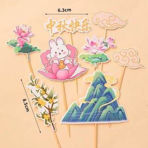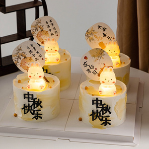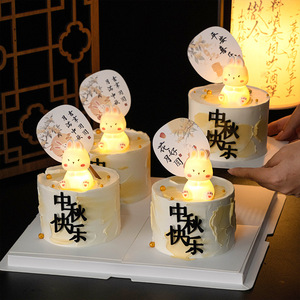 2025年中秋節ケーキデコレーションプラグイン 中秋節おめでとう 花が咲く月 扇子 光るウサギランプ デコレーションオーナメント
