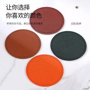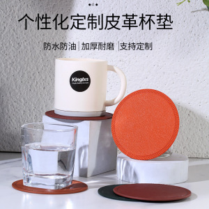 パーソナライズされた革のコースターはシンプルで贅沢で高級感のある円形のコースターです。
