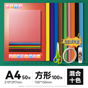 【先生推薦】混色ワックスペーパー10枚【A4 50枚+15cm 100枚】ハサミ+スティックのり+両面テープ付き