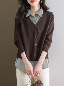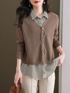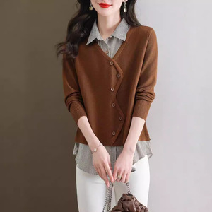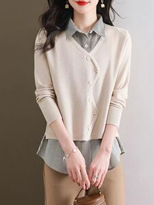 フェイクツーピーストップス レディース 秋冬ニットセーター 2025年新作 おしゃれ 高級感 長袖シャツ