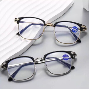 大きな顔の男性と女性向けの新しい軽量高級ビジネス高級老眼鏡、目の保護が広げられ、青色光放射を防ぐ眉毛付き老眼鏡