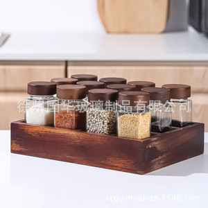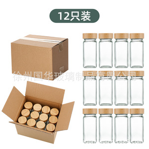 120ml角型調味料瓶キッチンガラス調味料缶竹木相思木40オンスガラス調味料缶棚付き