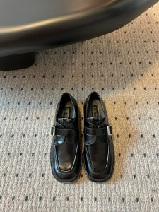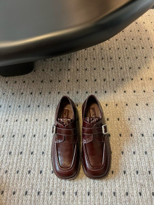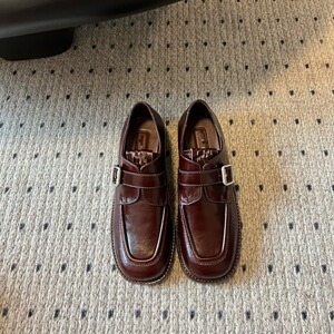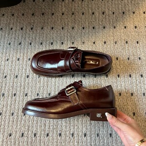 2024新しいレトロな本革の浅い口のバックルの一つの足はiuの家の楽福の靴の靴の女性の小さい革靴を漕ぎます。