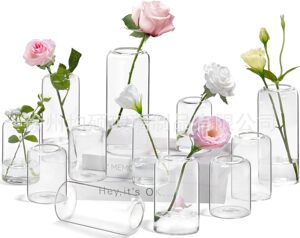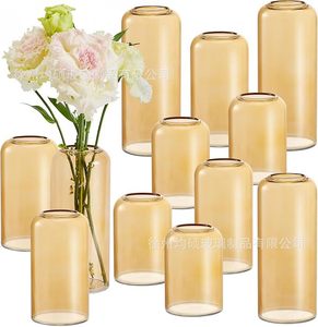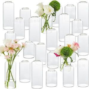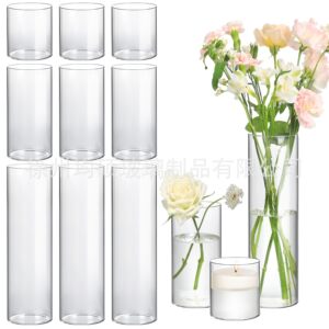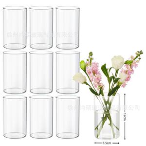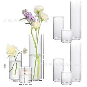国境を越えた売れ筋透明円筒形ストレートガラス花瓶ヨーロピアンスタイルのシンプルな燭台ライト高級ホームドライフラワー装飾装飾品