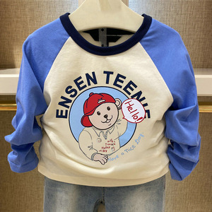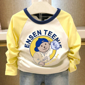 新しい男の子の長袖のtシャツの春秋の金の熊のプリントの中で大きい子供の百合の底のシャツの韓国版の子供服
