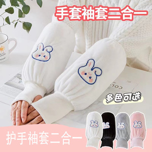大人の子供の清新な百合の袖の学生の袖の筒の長いタイプの袖の女性の秋冬の汚れを防ぐ暖かい手の2つの袖のカバー
