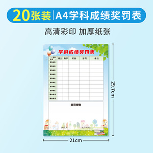 教科成績賞のペナルティシート 20 枚