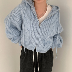 現物! INS韓国東大門 ~ ゆったりとした怠惰な麻花と帽子のダブルファスナーのデザインセーターのカーディガンのコート