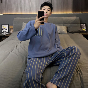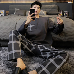 パジャマ男性の新型カジュアル春秋青年スーツは男性の大きいサイズの夏の家庭服の薄い長袖を着ています。