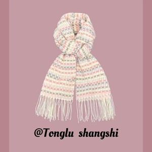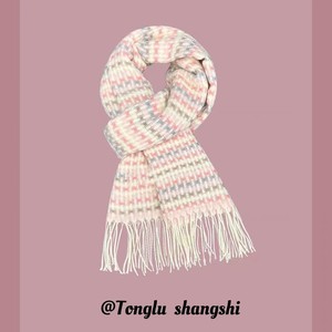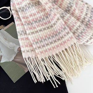 日本の小清新な薄いピンクの小さい格子はカシミヤのフリンジスカーフの女性の冬の保温をまねます。