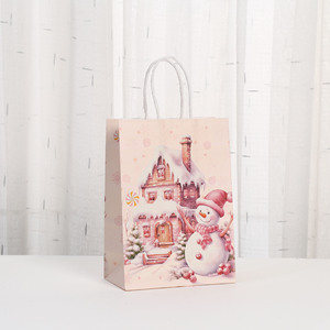 圣诞节手提袋粉色包装袋购物袋牛皮纸袋派对糖果礼品袋批发外卖袋