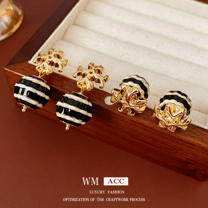 中古vintage真金电镀银针花朵球形耳钉小众流苏耳环高级感耳饰女