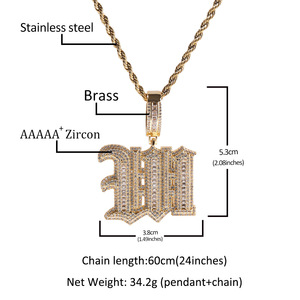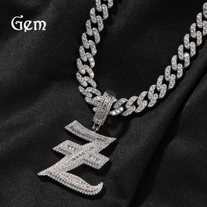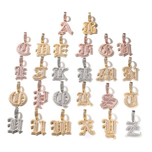 欧米のヒップホップ古萌大サイズの古い英語の単一のアルファベットのペンダントの銅はジルコンの小さい大衆の百合の装飾品を入れます。