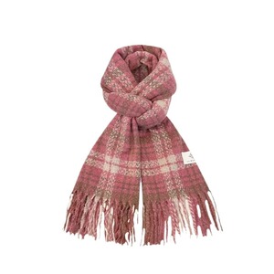格子のマフラーの女性の冬の2024の新型の乾燥したバラのピンクのマフラーの秋冬の雰囲気感の高級感の百合