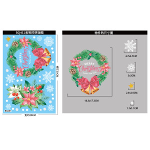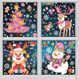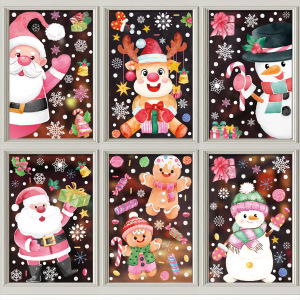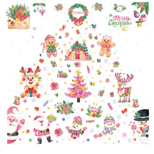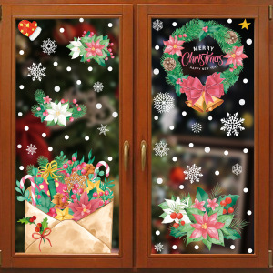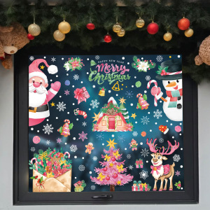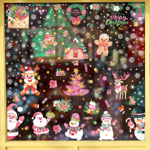 クリスマスパーティー装飾品キャンディー棒雪だるま雪雪静電ステッカー花輪ヘラジカサンタクロースガラスシール