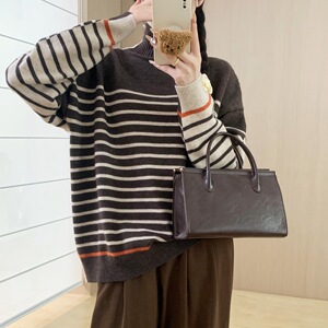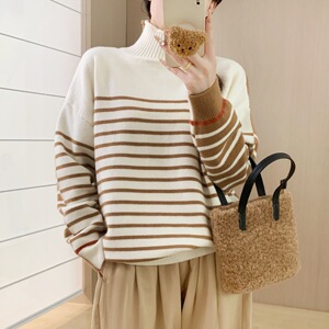 2024国境を越えたアマゾンは、柔らかいモチモチの半高襟の新しいセーターを着て、厚い中長のゆるいニットの女性を着ています