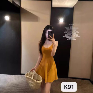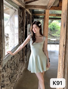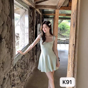 スクエアネックニットウールサスペンダードレス流れるようなシェルスカート痩身スリム気質ショートヘップバーンスタイルの女性の夏