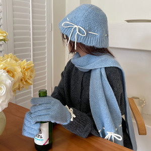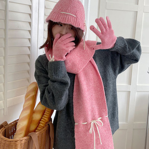 蝶結びのマフラーの女性は冬の高級感があります。