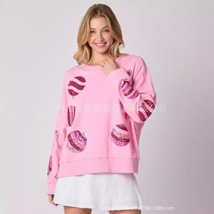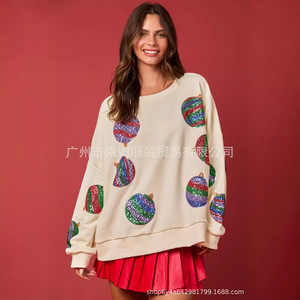 アマゾン秋冬の新型越境欧米のクリスマスカラーの卵のスパンコールの上着のカジュアルな長袖の頭の服の女性