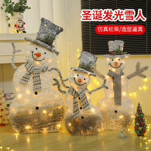 クリスマスの光る白い植毛雪だるまのショーウインドーのデパートのホテルの装飾品のシーンは祝日の美しい陳の置物を配置します。