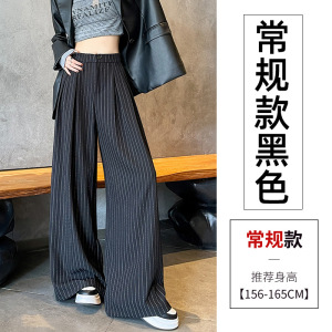 秋の女性用ストライプスーツワイドレッグパンツ、ゆったりとしたスリムなハイウエストストレートレッグカジュアルフロアレングスパンツ